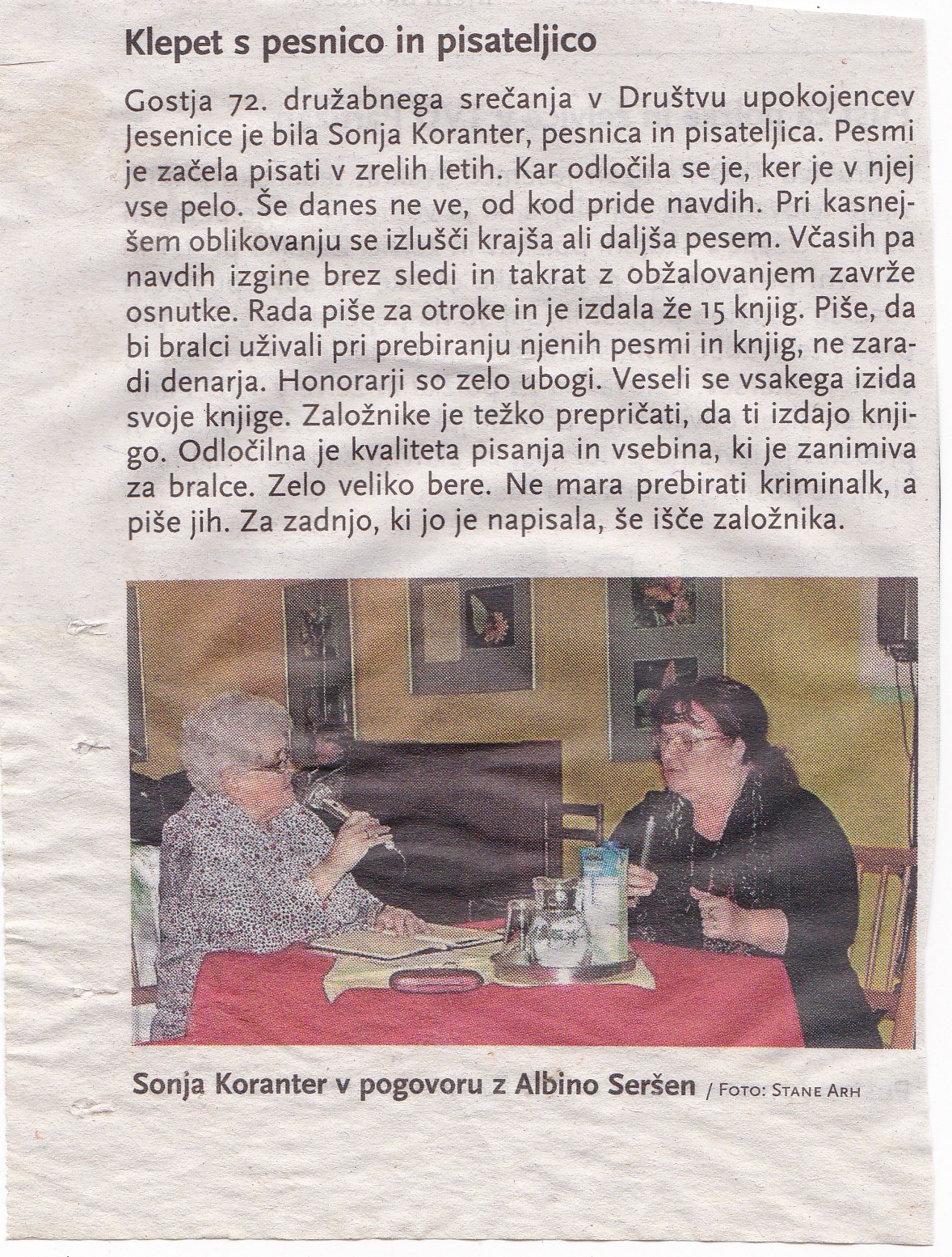 - intervju, 8. februarja 2016, objavljen v Jeseniških novicah